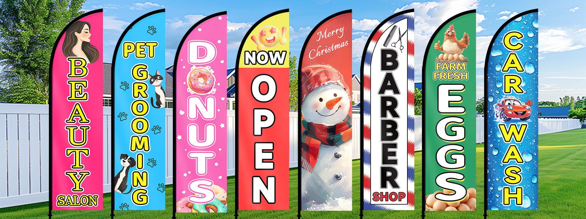 Our feather flag is made of high-quality polyester fiber material and can be used outdoors for 6-12 months under normal weather conditions. The factors that affect the service life include weather conditions, frequency of use, and maintenance methods. In extreme weather conditions (such as strong wind, rainstorm and strong sunlight), it is recommended to put up the flag to extend its service life.