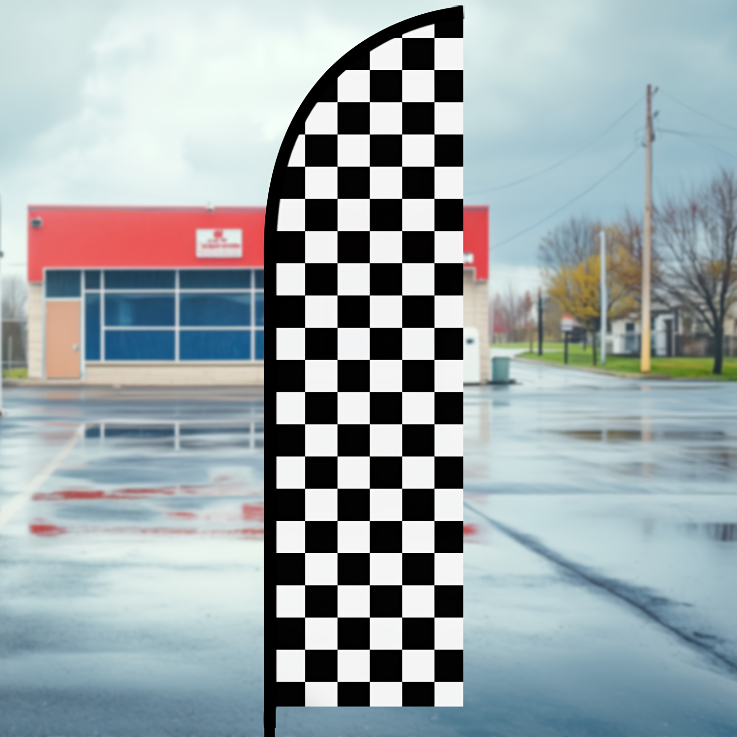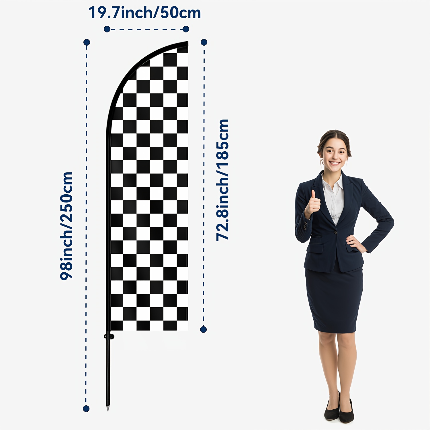 1pc Black And White Check Feather Flag With Flagpole, Checkered Racing Banner, Outdoor Business Advertising Flag, Racing Event Signage, 72.8x19.7in, Optional Aluminum Pole, Durable Polyester Fabric