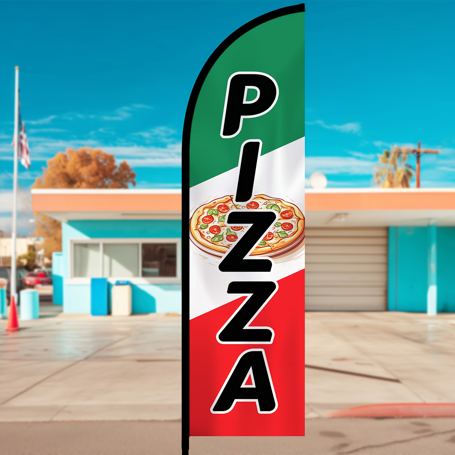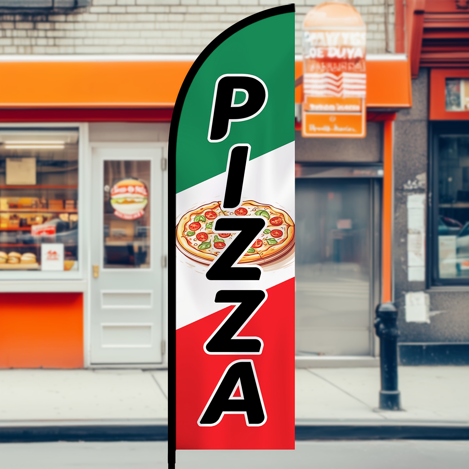 [Eye-Catching Sign]Bold “Pizza” lettering with a vibrant feather flag shape grabs attention and boosts your storefront visibility.