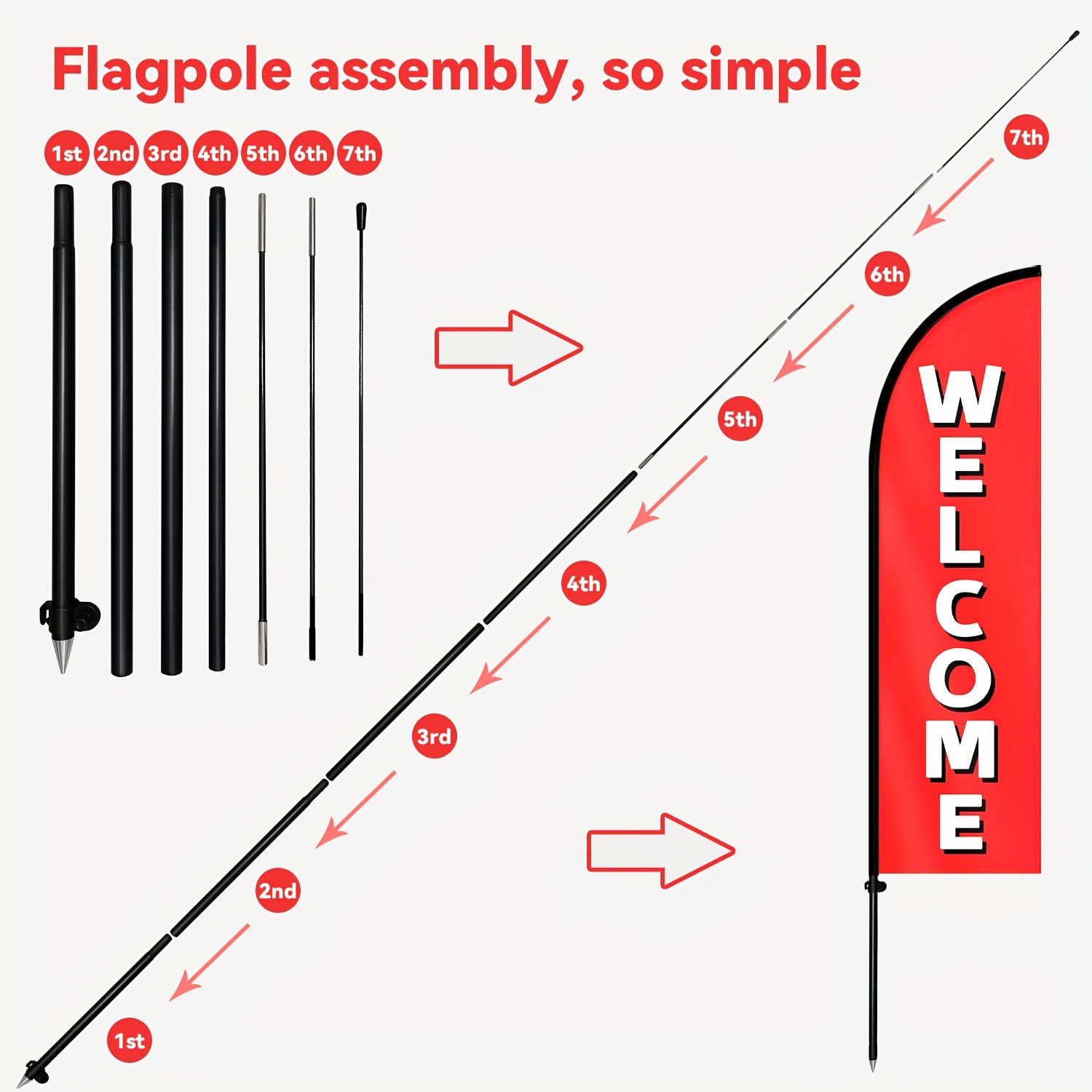 The flagpole needs to be purchased separately. We offer various types of flagpoles, including ground insertion, cross base, and more. You can choose the appropriate flagpole type based on the usage scenario. If you need a flagpole, please contact our email. We have very favorable flagpole options on other platforms.