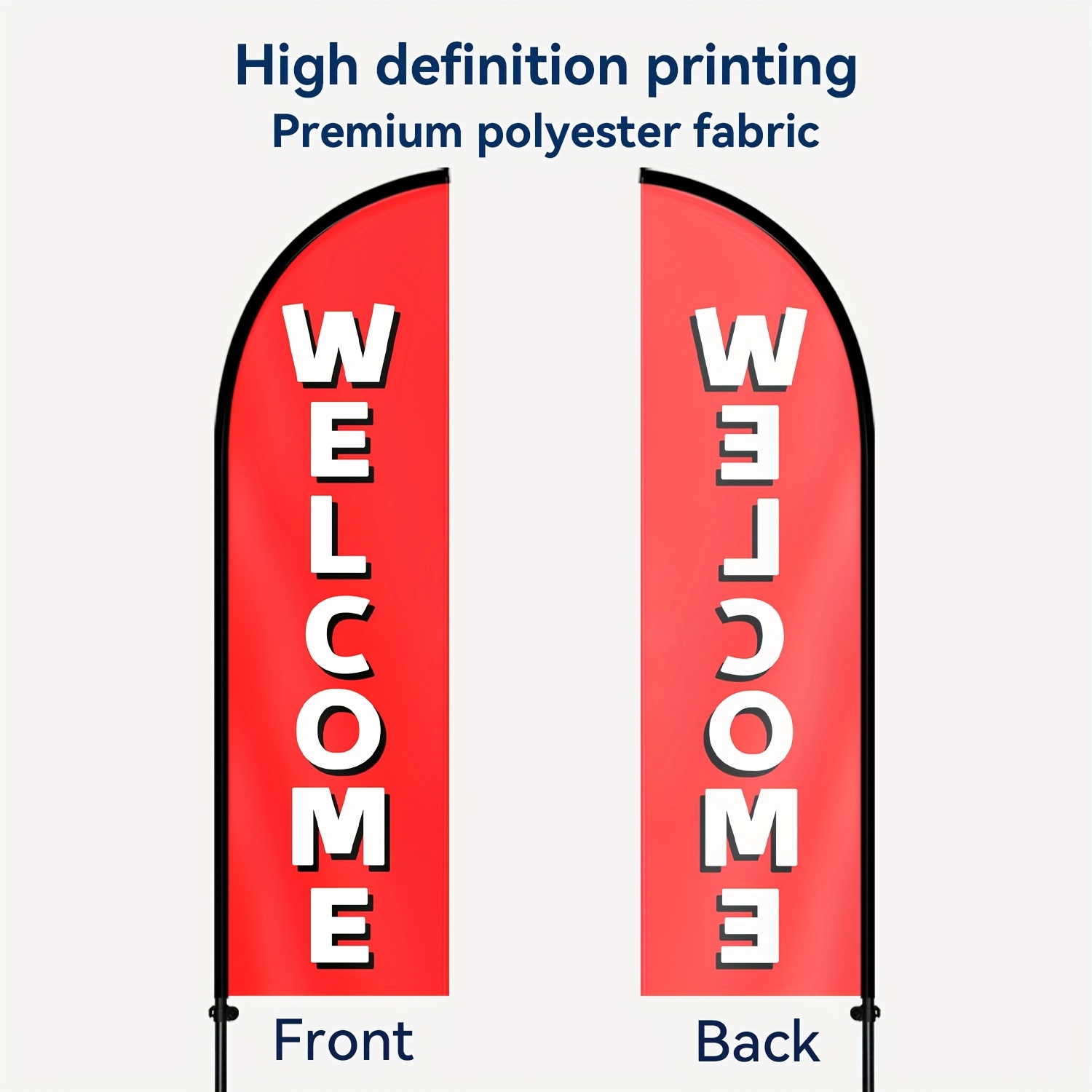 Our feather flag is made of high-quality polyester fiber material and can be used outdoors for 6-12 months under normal weather conditions. The factors that affect the service life include weather conditions, frequency of use, and maintenance methods. In extreme weather conditions (such as strong wind, rainstorm and strong sunlight), it is recommended to put up the flag to extend its service life.