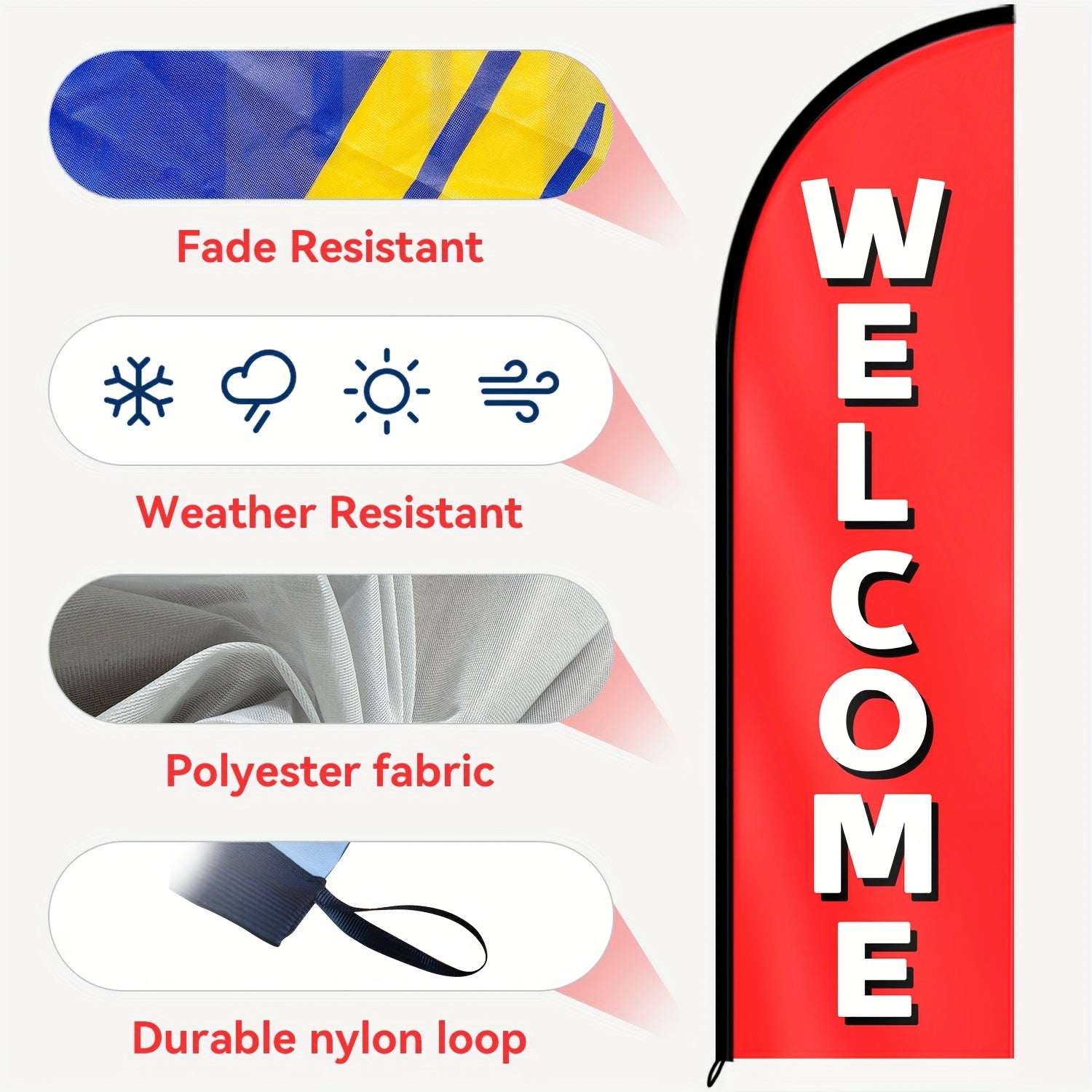 WOANIXY Welcome Feather Flag with Flagpole, 1.6x6.1ft