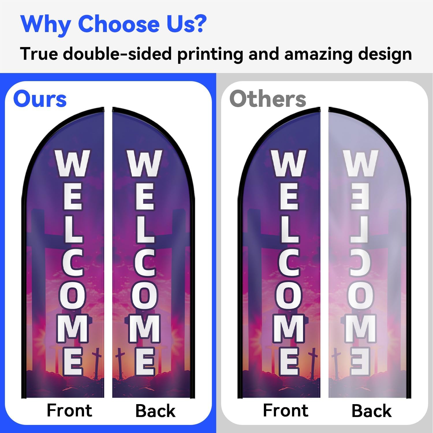 Make your church entrance instantly recognizable with a tall, vertical church welcome feather flag. The flowing motion and bold design help guide visitors and first-time guests with ease.