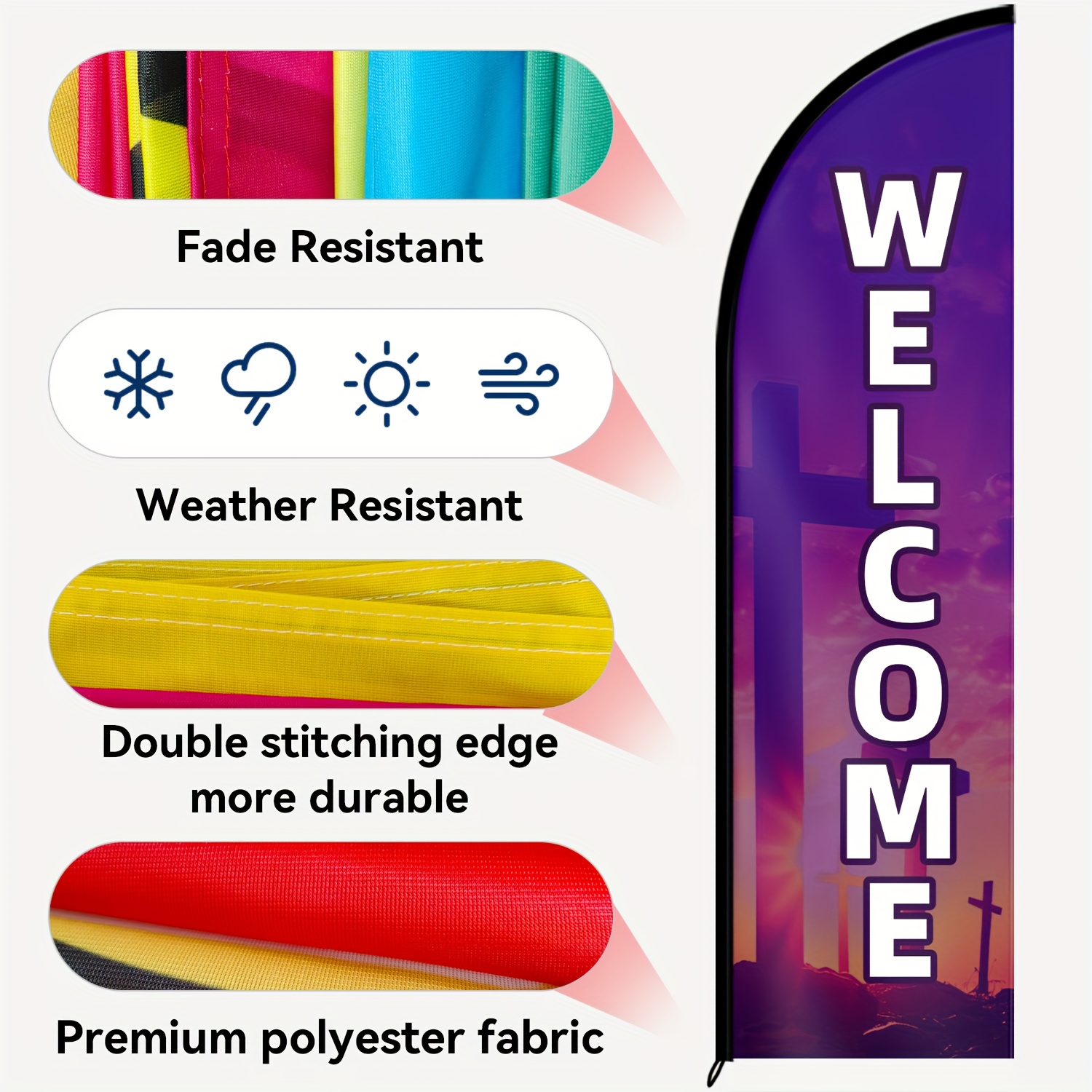 Church Welcome Feather With Pole Kit, Christian Outdoor/Indoor Worship Banner - Portable Church Sign With Welcome Signage For Easter, Weddings, Funerals - Ideal For Doorways, Events, And Church Displays -- Durable And Easy Setup